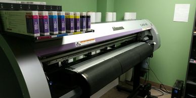 Our large format vinyl printers offer the opportunity to customize your vehicle, windows, or walls to advertise in one of the most effective ways.